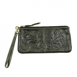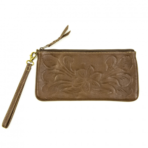 Beautiful, handtooled leather wristlet with detachable wristlet.